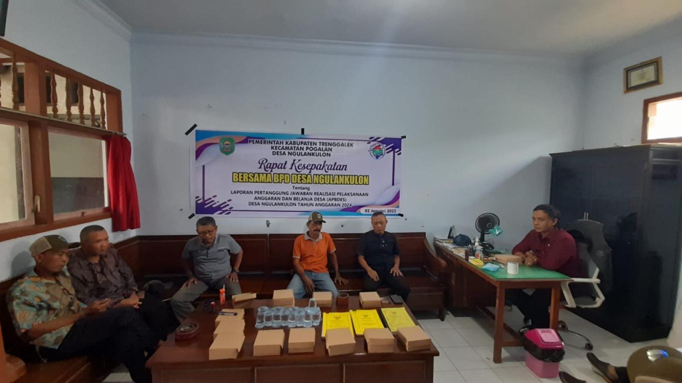 Pada hari ini, tanggal 02 Bulan Januari tahun 2025 Kepala Desa besert seluruh Perangkat Desa melaporkan pertanggung jawaban realisasi Anggaran Pendapatan dan Belanja Desa Ngulankulon Tahun Anggaran 2024 kepada BPD.